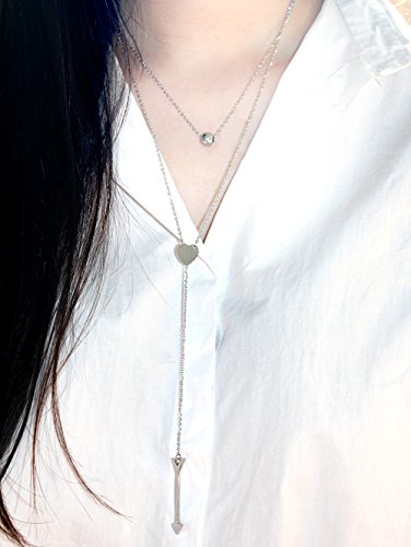 -. Feature : Premium Surgical Grade Stainless Steel Y Shape Necklace - Hingh Quality and Durable / Necklace Chain Lengths 23" , Perfect Silver Chain Necklace for Women Arrow Pendant with Lariat Style Chain Necklace Dainty / Versatile - Exquisite Sequins Multilayer Chain Beads Necklace with Heart Pendent Arrow Pendant / Please note: The double-layer necklace maybe easy to tangle. If you do mind it, please think carefully before purchasing it. Sest: Taking the necklace from the clasp when you wear it, so that it can be neater and more smooth. / Simply Stunning, Perfect gift. Great for your family or beloved one as birthday and holiday present like Thanksgiving Day, Valentine's Day and Christmas Day.