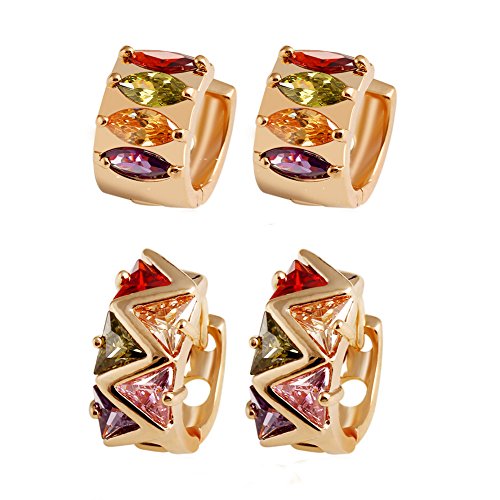 -. Feature : Charming central AAA+ Cubic Zirconia, shines from every angle / Classic Design, 2 Colors Hoop Earrings, Multiple Color Creats Multiple Choices for Your Daily Wearing. / Light weight Design gives you comfortable wearing experience; Strengthening Firm Clasp, Durable and Easy to Use. / All 2 Pairs are Made of High Quality Hypoallergenic Brass, Free of Lead and Nickel. Great electroplate technique insures long-time color retention. / Come with a Environment-friendly Black Velvet bag.
