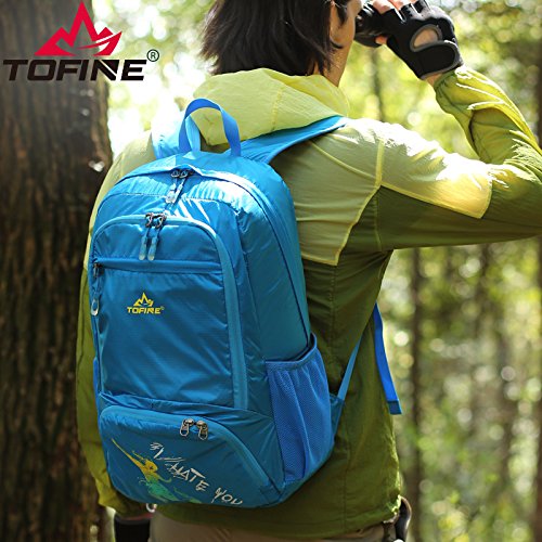 -. Brand : Tofine -. Department : Womens -. Feature : Easy to keep on hand since it folds into its own pocket and fits in your suitcase or backpack / The shoulder strap is adjustable for a perfect fit, and can also be removed if you prefer to carry the bag in your hand / Adjustable padded shoulder straps and Reflective strip on the front compartment / Small and foldable but has enough space to hold everything with you / The TOFINE backpack has a great size for day-to-day wear, work, school and commuting, while the showerproof Vinylon-F fabric ensures that your stuff stays safe -. IsAutographed : 0 -. IsMemorabilia : 0 -. Label : TOFINE -. Manufacturer : TOFINE -. MPN : 8255-P -. PackageQuantity : 1 -. PartNumber : 8255-P -. ProductGroup : Sports -. ProductTypeName : OUTDOOR_RECREATION_PRODUCT -. Publisher : TOFINE -. Studio : TOFINE -. Title : TOFINE Packable Camping Hiking Gear Foldable Waterproof Backpack for Women