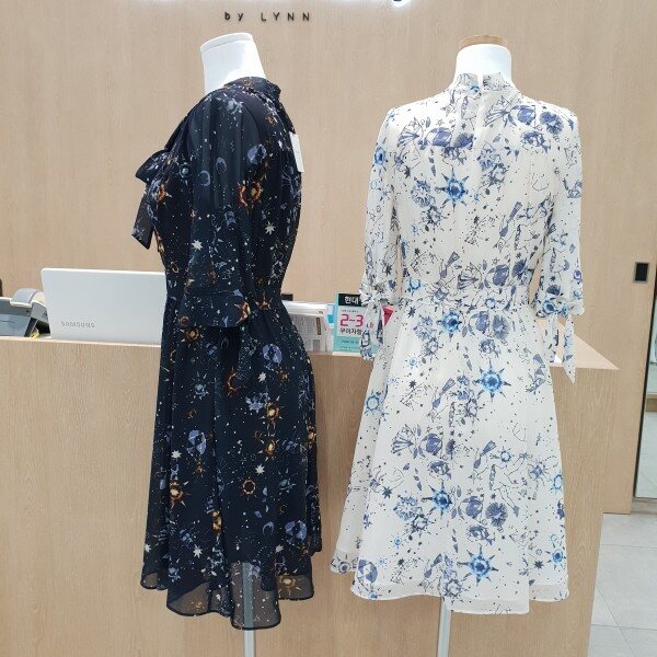 우주프린팅이 멋스러운 실키한원피스입니다