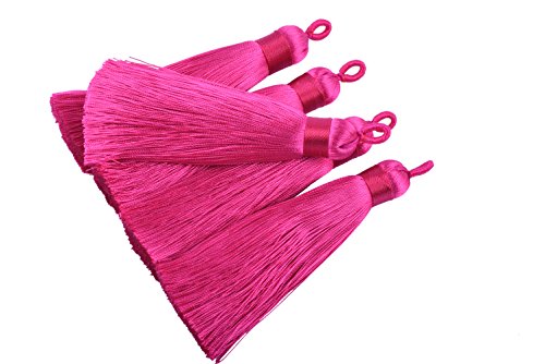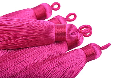 KONMAY 10pcs 3.4''(8.5cm) Handmade Imitation Silk Tassels with Hanging Loop for Jewelry Making (Rose)