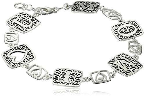 -. Title : Sterling Silver Filigree "Mom" Link Bracelet, 8"