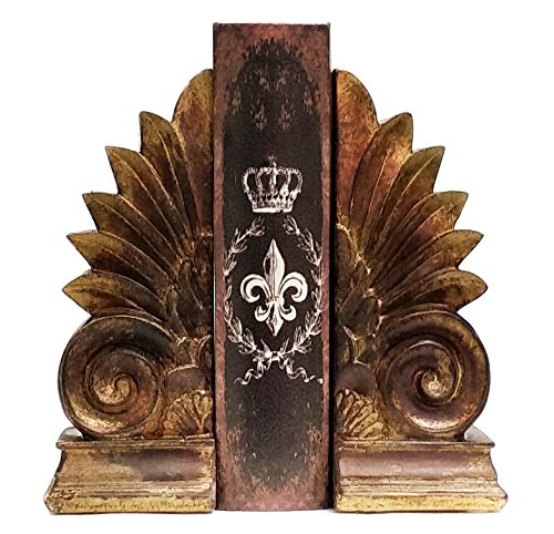 - Captivating pair of bookends made from bronze-colored polyresin - Creatively crafted with an aged fleur-de-lis style 8" inches