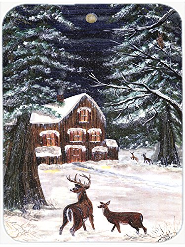 Caroline's Treasures Winter Scene with Deer Glass Cutting Board, Large, Multicolor
