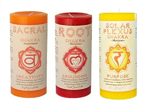 Crystal Journey Pillar Chakra candles bundle of 3 (Sacral Chakra, Root Chakra, Solar Plexus Chakra)