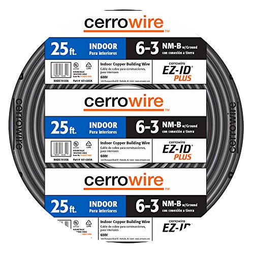 Cerrowire 147-4203A 25-Feet 6/3 NM-B Stranded with Ground Wire, Black