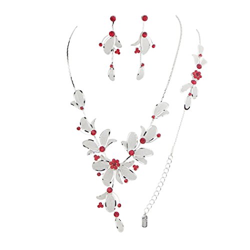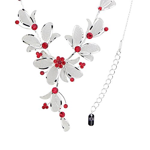 -. Binding : Jewelry -. Brand : Rosemarie Collections -. Department : womens -. Feature : Beautifully detailed floral leaf design with red rhinestones in silver tone setting / 17" length plus 4" extender chain; adjusts for the perfect collar length necklace / 7" bracelet with 2" extender chain, fits small to extra large wrists / Post back drop earrings; 2.25" length / Stunning fashion jewelry set that is great for weddings, parties, special occasions and dressy looks -. Label : Rosemarie Collections -. Manufacturer : Rosemarie Collections -. Model : SW-7072-2XXX -. MPN : SW-7072-2XXX -. PartNumber : SW-7072-2XXX -. ProductGroup : Jewelry -. ProductTypeName : FASHIONNECKLACEBRACELETANKLET -. Publisher : Rosemarie Collections -. Studio : Rosemarie Collections -. Title : Rosemarie Collections Women's Red Crystal Flower Statement Necklace Bracelet Earring Set