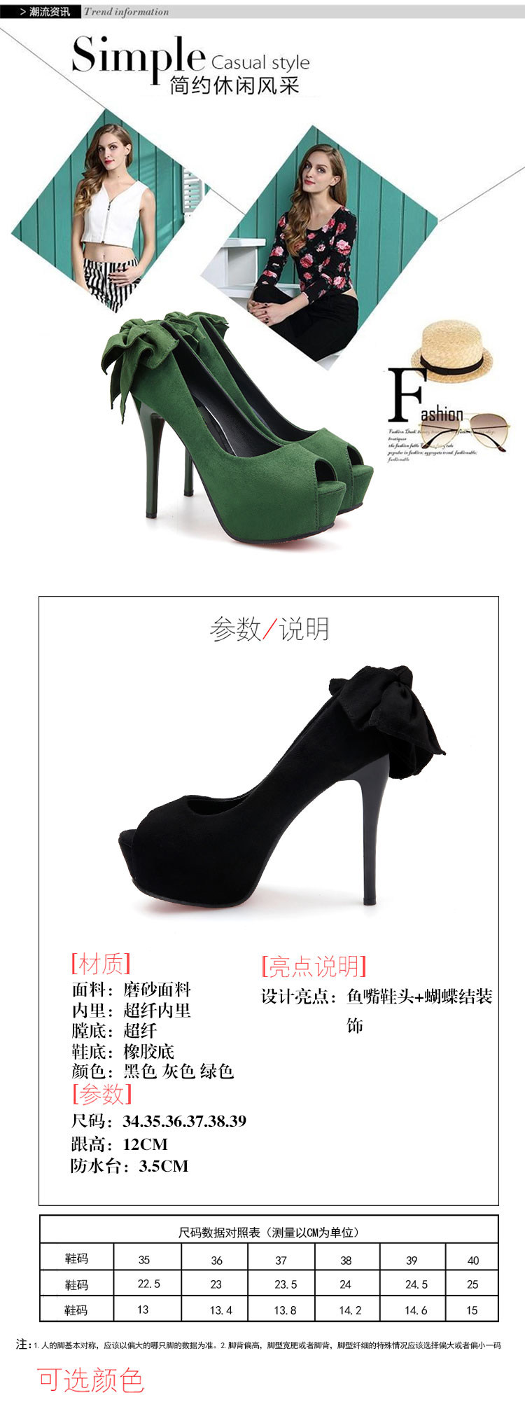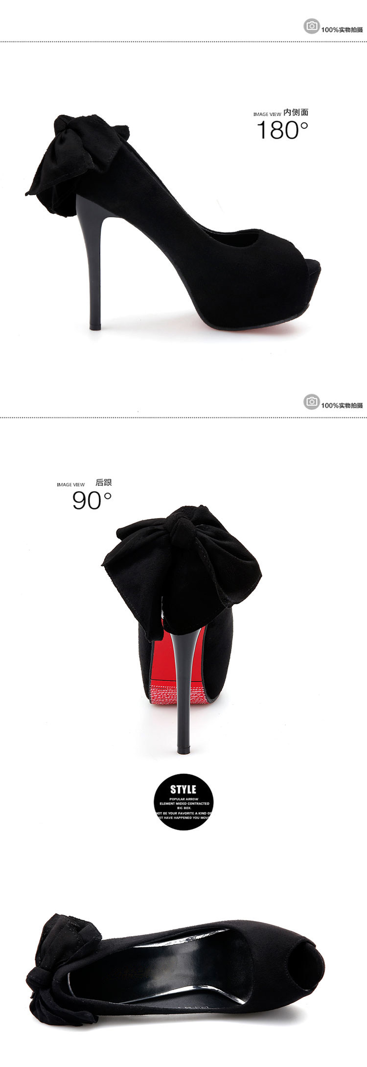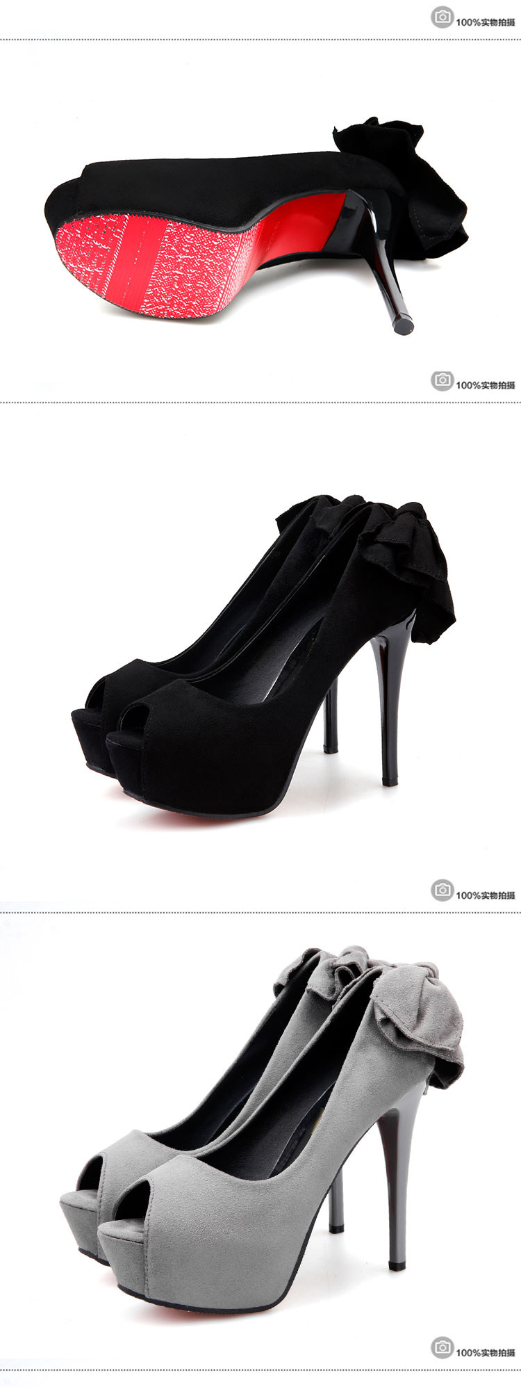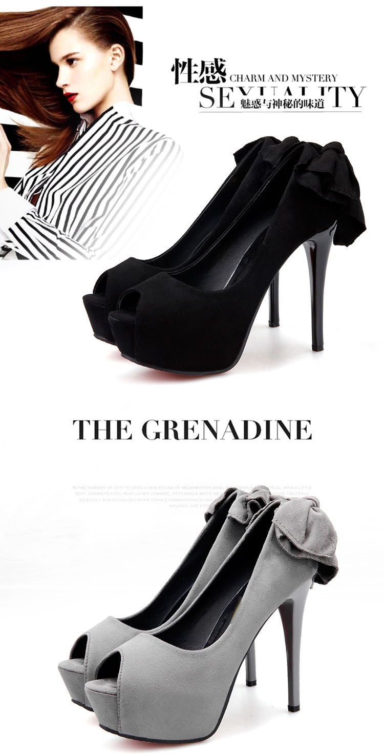 14CM超高跟鞋女细跟12防水台蝴蝶结夜店性感绒面鱼嘴秋季