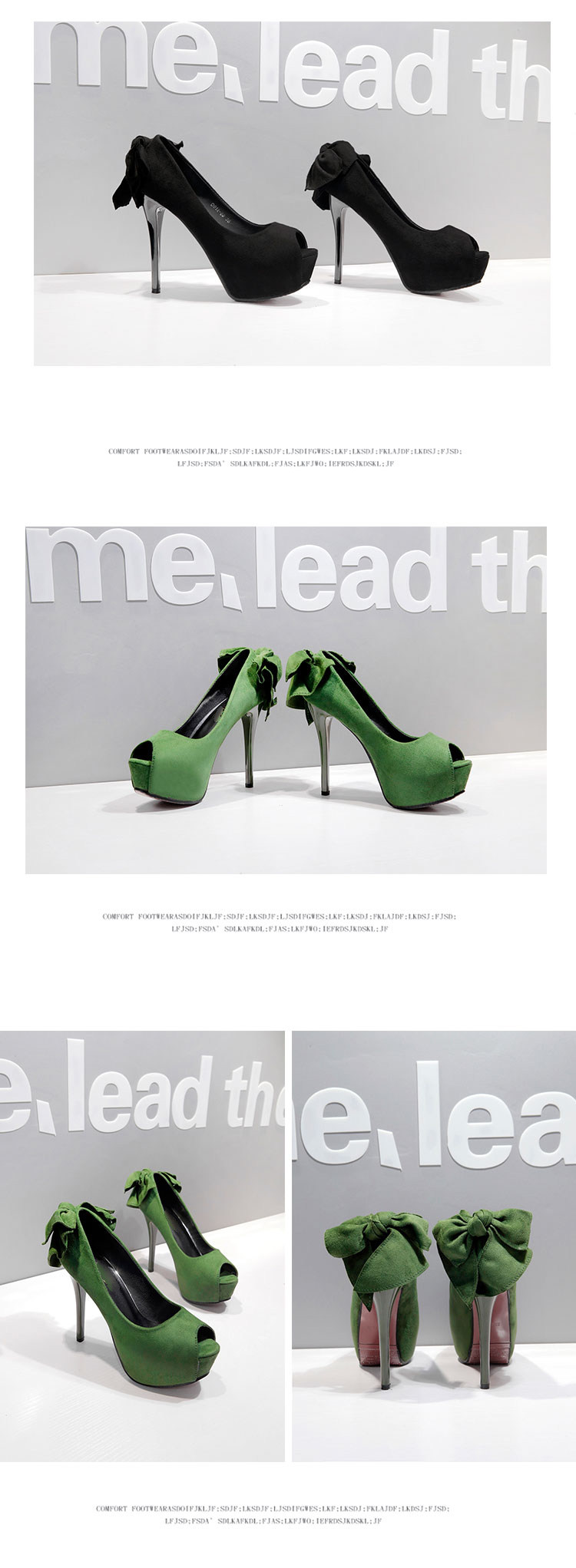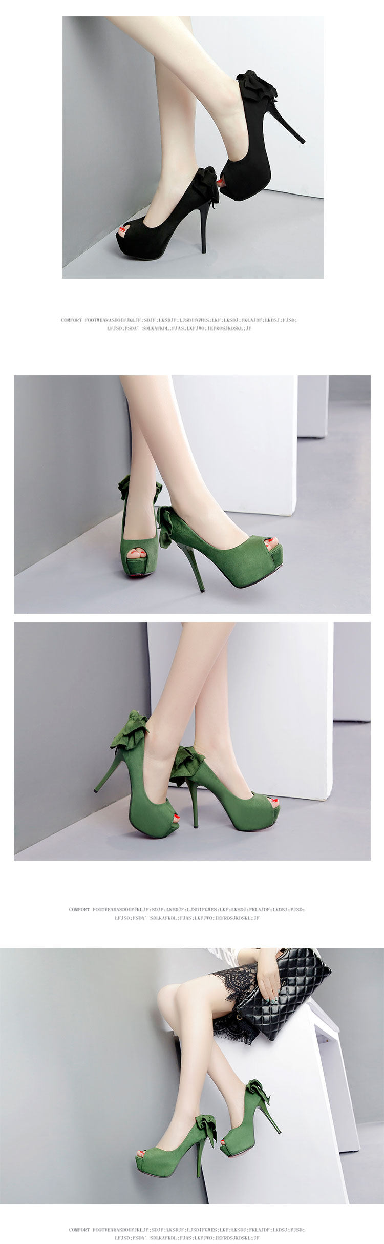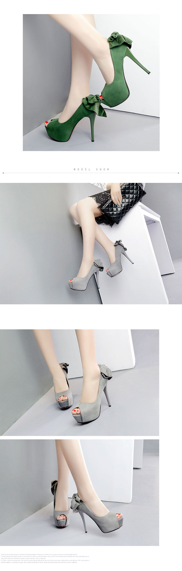 14CM超高跟鞋女细跟12防水台蝴蝶结夜店性感绒面鱼嘴秋季