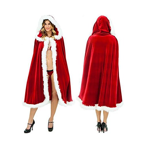 -. Feature : Women's Hooded Cape Christmas Cloak Velet Santa Hooded Cape is made of high quality velvet,touch soft and comfortable wear experience.Great hooded cloak cape for Christmas,party,Cosplay or wedding. / Size: Length 47.2"(120cm). Unisex Christmas Mrs Santa Claus Cloak with a adjustable ribbon,ties at the neck,one size fits most people, / Deluxe long Christmas hooded cape design, self-tie closure, white fluffy faux fur trim.Soft,bright red,durable and odourless,make you charming and warm. / Perfect for Christmas,Halloween, Cosplay, New Years, dress-up, costume parties, role play, stage costuming witches, vampires, royalty, count dracula and more. / Santa Claus Style clock suitable for both men and women.,Washable - Easy to clean and maintain.