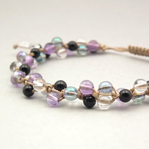 원본상품명: ラベンダ?アメジスト オニキス 水晶 ミルキ?クォ?ツ オ?ラクォ?ツ 編み?みブレスレット