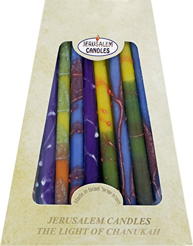 - Chanukah Candles 45 Hanukkah Candles Decorative Purple, Yellow, Orange, Green, With Blue & Red Frosted Stripes - Hand Made in Israel