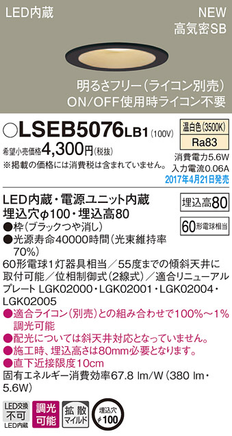 ●寸法(mm):埋込穴φ100・埋込高80