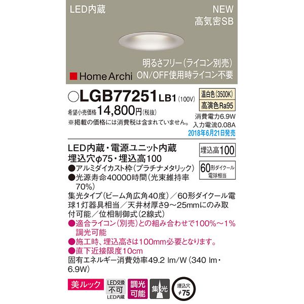●光源:LED(内蔵、高演色・温白色タイプ)、色温度:3500K、光源寿命40000時間(光束維持率70%)