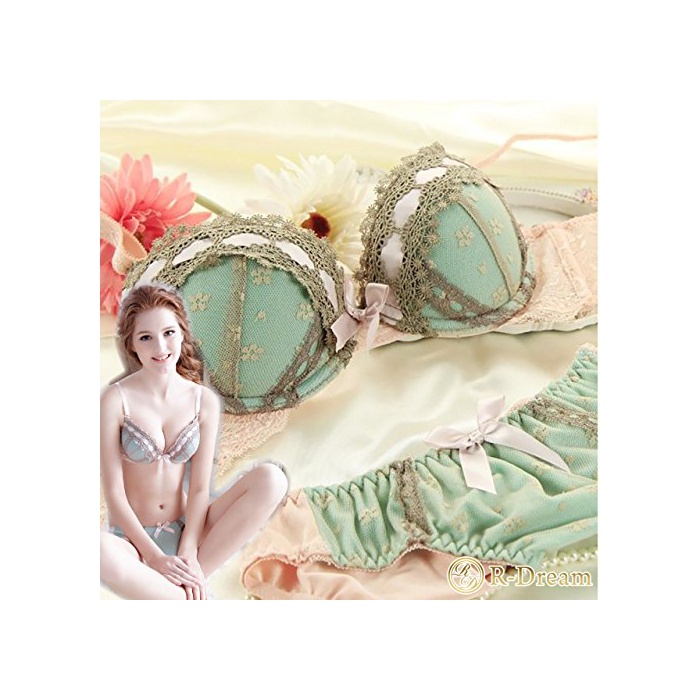 (R-Dream) 파스텔 바이 컬러 3/4 브래지어 쇼츠 기품 넘친 레이스 란제리 세트 (그린 80C)