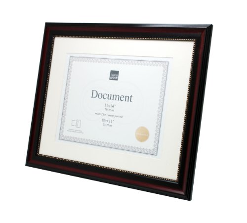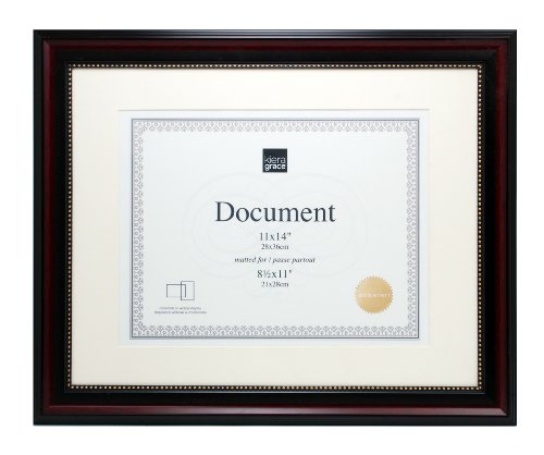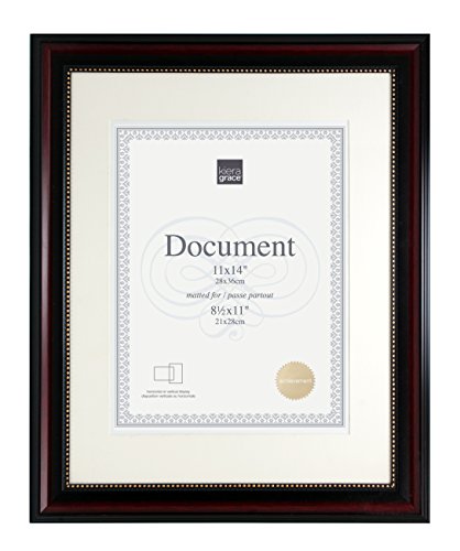 Kiera Grace Lucy Document Frame, 11 by 14-Inch, Matted to 8.5 by 11-Inch, Dark Brown with Gold Beading