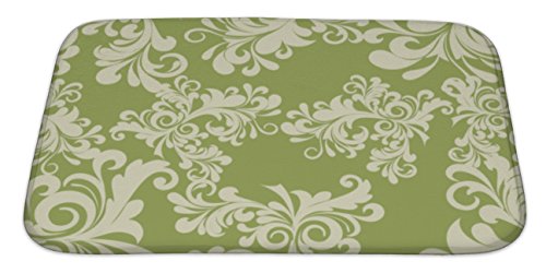 Gear New Green with Floral Pattern Bath Rug Mat No Slip Microfiber Memory Foam