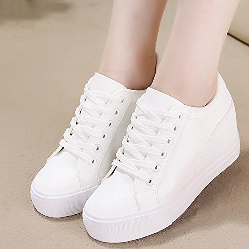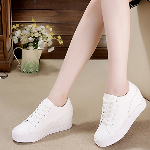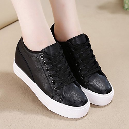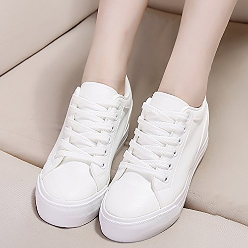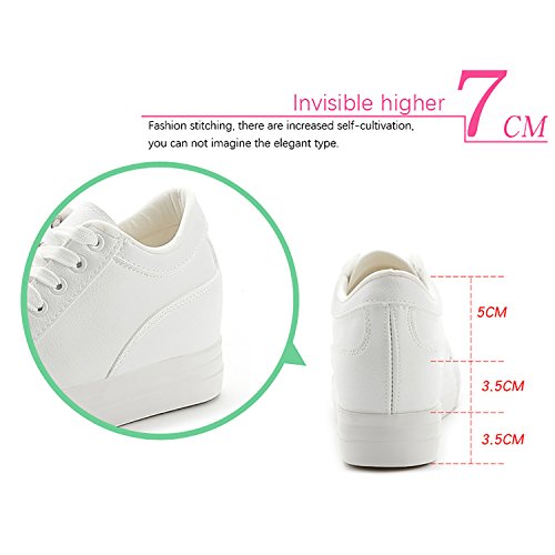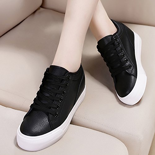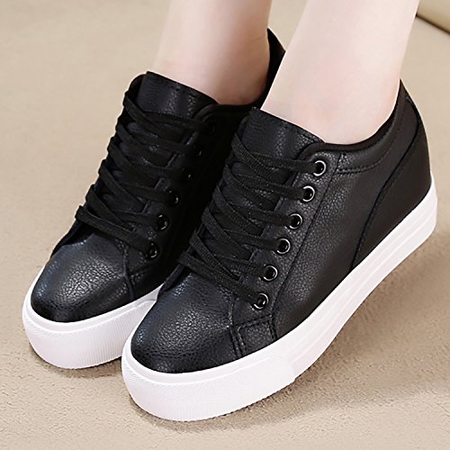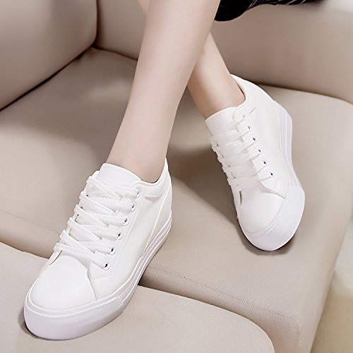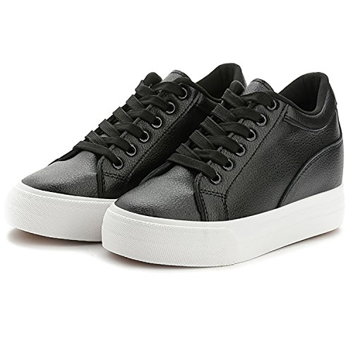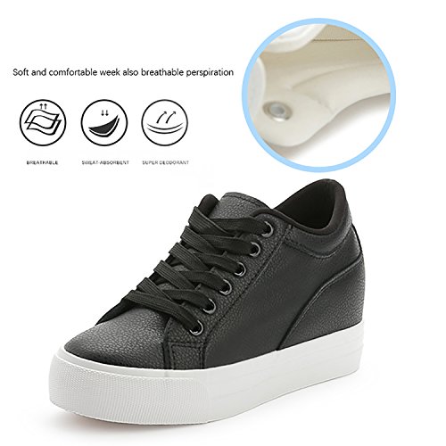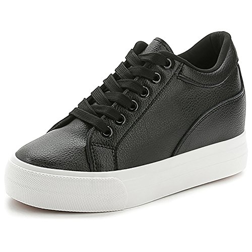 (Odema)/Women's/Athletic Outdoor/DIRECT FROM USA/Odema Womens Lace-up Low-Top Fashion Skate Sport Flat Shoes Leather Hidden Heel Wedge White Bla...