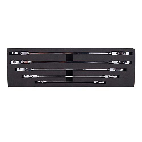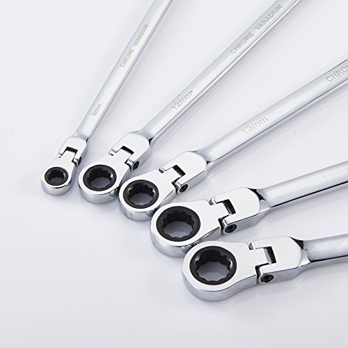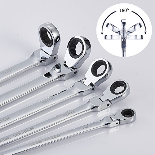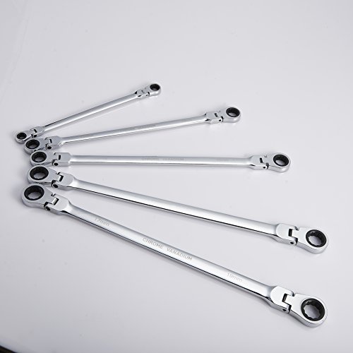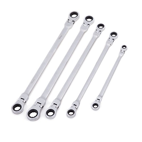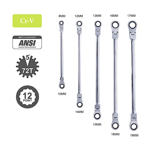 Orion Motor Tech 5pcs Cr-V Combination Extra Long Box End Ratchet Wrench Set with Flex Head | Metric 8mm to 19mm