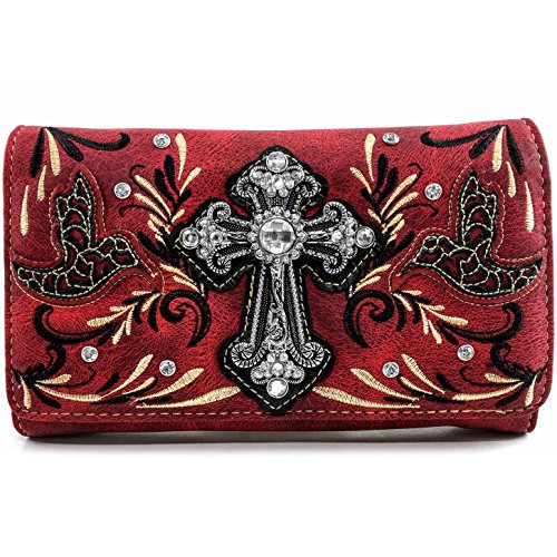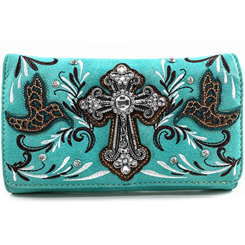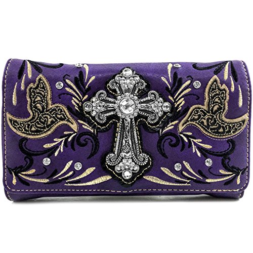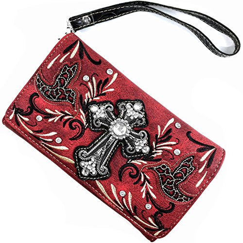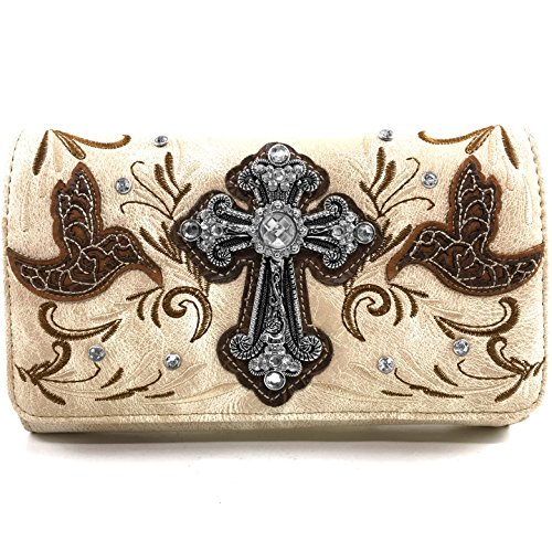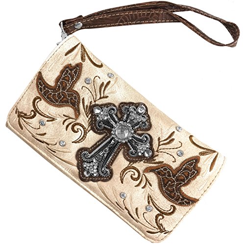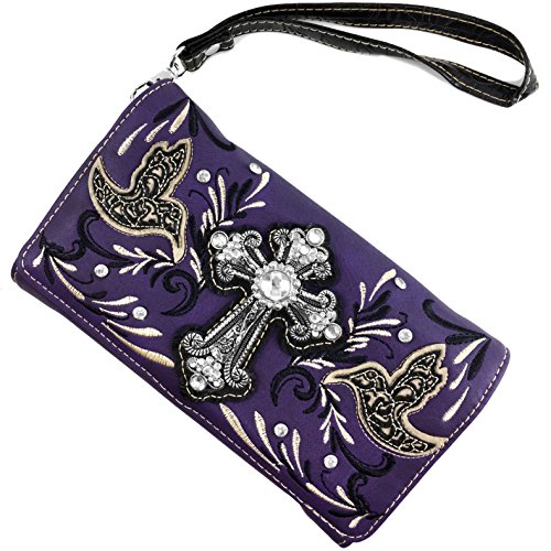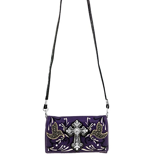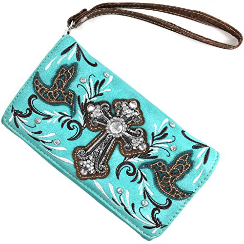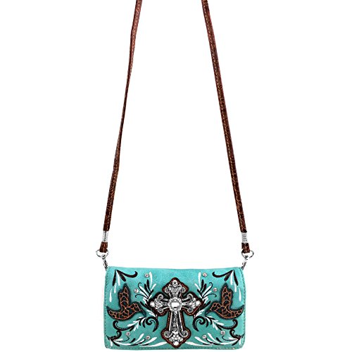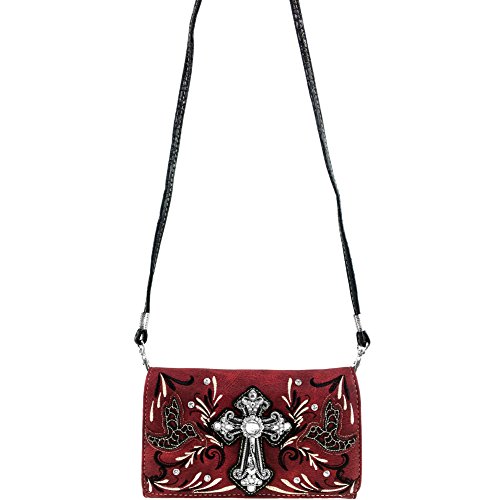 Product Description Justin West Embroidery Hummingbird Autumn Floral Design Rhinestone Cross Wristlet Trifold Wallet Attachable Long Strap 0
