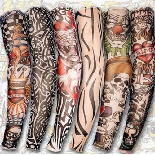 Machine washable. Recommended to hang dry. 6 different designs of tattoo sleeves, as shown in picture. 1 unit per design and individually packaged in poly bag