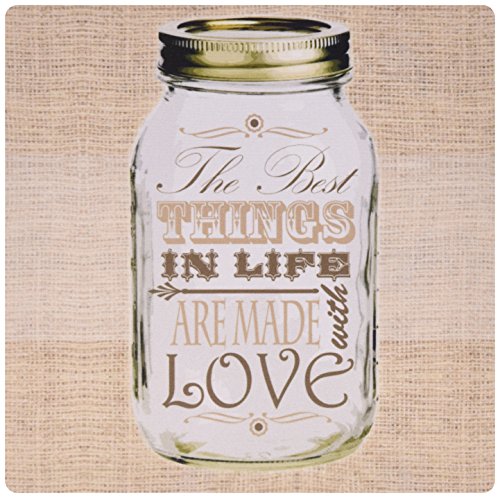 3dRose LLC 8 x 8 x 0.25 Inches Mouse Pad, Mason Jar on Burlap Print Brown The Best Things In Life Are Made With Love Gifts For The Cook (mp_128507_1)