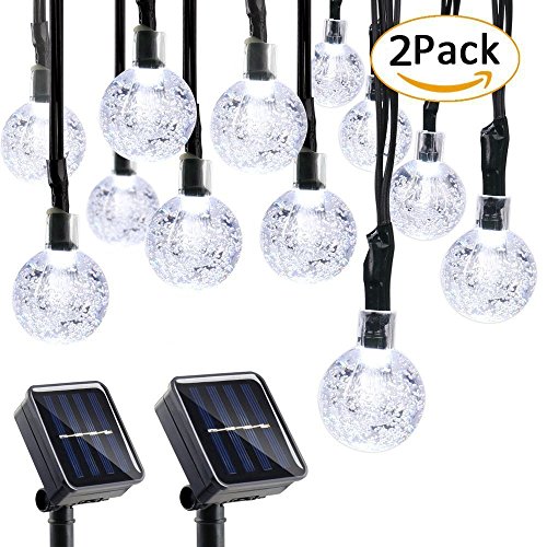 Alvivi 2 Pack Solar Powered Globe String Lights 30 LED 20ft 8 Modes Fairy Crystal Ball Starry String Lights Solar Lights for Gardens, Home, Party and Holiday Decoration(White)