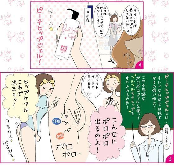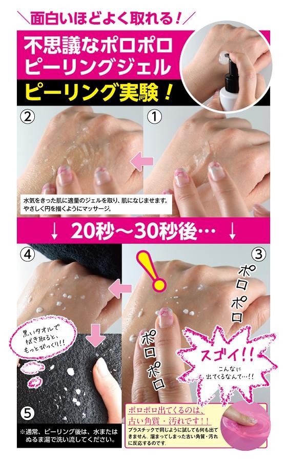 | ご使用方法 | ●体を洗った後、お肌の水気を軽くきって、気になる部分を中心に適量をお尻全体になじませ、やさしく円を描くようにマッサージします。●ゲルが古い角質を巻き込んでポロポロと出てきたら(20~30秒程度)、水またはぬるま湯でよく洗い流してください。●その後、クリーム等でお肌を整えてください。※ご使用はお肌のコンディションに合わせて週に2~3回が目安です。※ぬれたお肌、乾いたお肌どちらでもお使いいただけます。 |