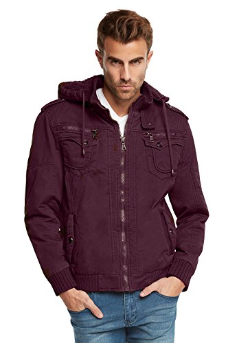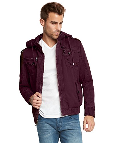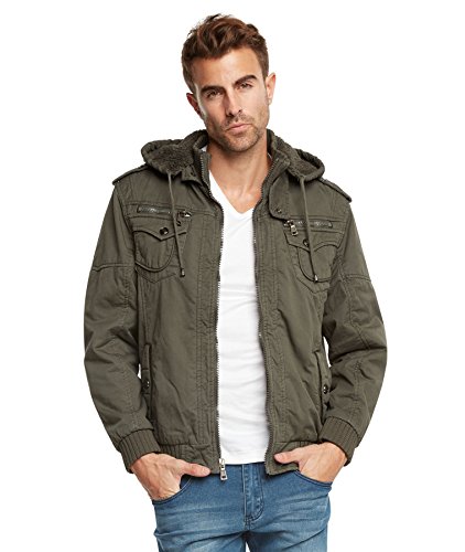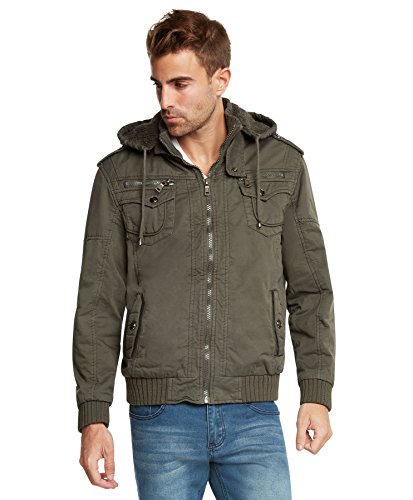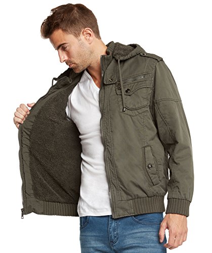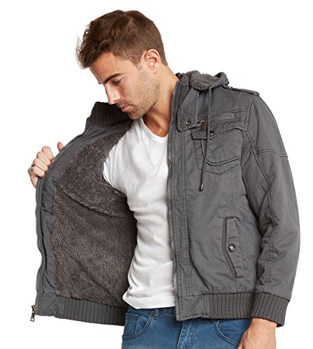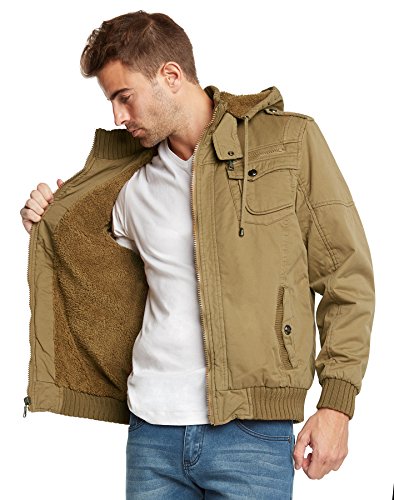 | Maximos Men's Sherpa Lined Sahara Hooded Multi Pocket Bomber Jacket |