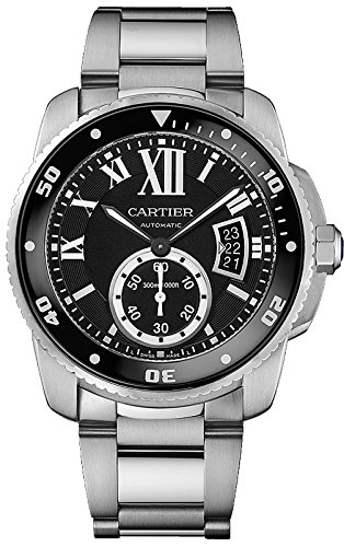 -. Title : Calibre de Diver Black Dial Steel Mens Watch W7100057