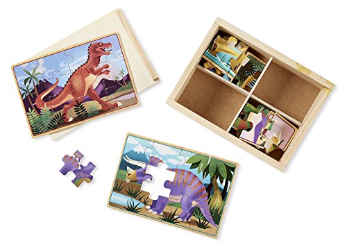 - Contains four wooden puzzles - a Triceratops, an Apatosaurus, a Stegosaurus, and a T-rex