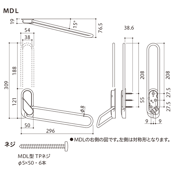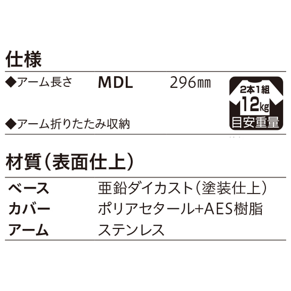 ●材質:ベース部:亜鉛ダイカスト カバー:POM樹脂+AES樹脂 アーム:ステンレス