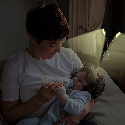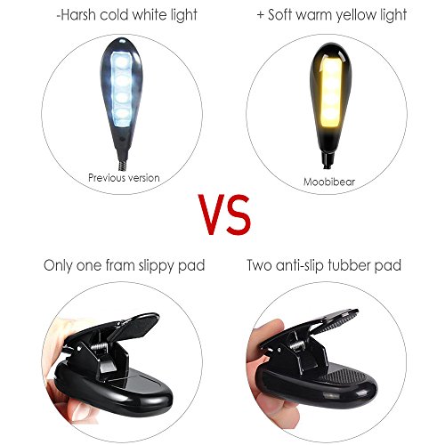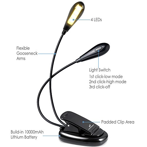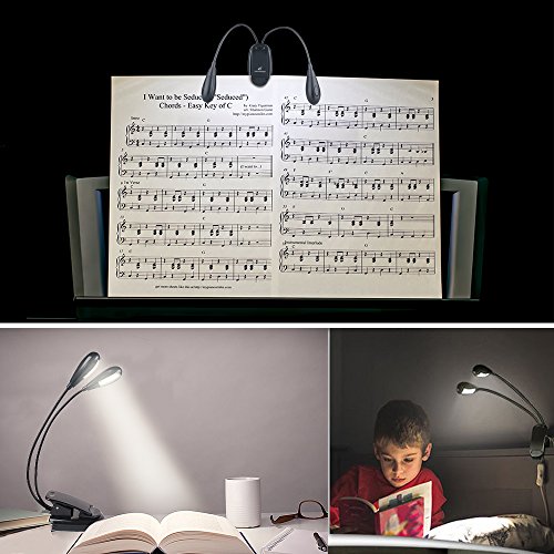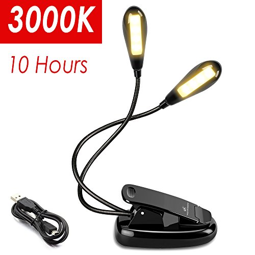 Moobibear Rechargeable 8 LED Book Lights & Dual Head Music Stand Light, 3000K Warm White Dimmable Clip On Reading Lamp for Books, Shelves, Kindle