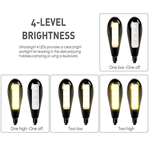 3 LIGHT MODES – 1st Click: Dimmed light, 2nd Click: Full brightness, 3rd Click: Off. The dimmable nature of this LED Clamp-on Light allows you to select between High and Low levels of light. It starts at the lowest light setting without burning out my eyes by turning on the lights.