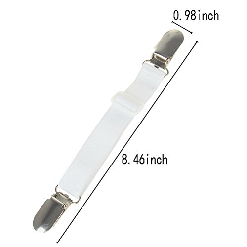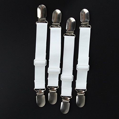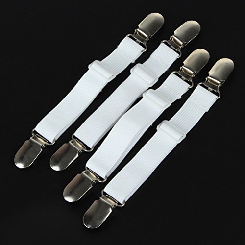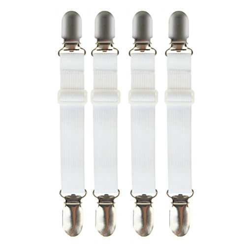 SUMAJU Adjustable Bed Sheet Fasteners, 4Pcs Heavy Duty Cover Grippers Elastic Fasteners Clips, White