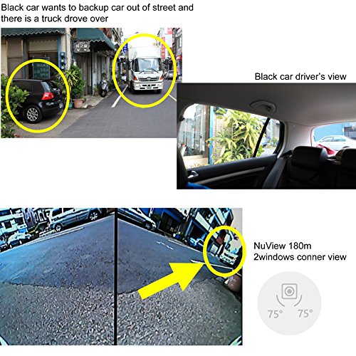 NuView 180m is an ultra-wide 180 degree backup camera (rear or front view) with 5 view modes. It provides "180degree horizontal view angle", there are absolutely no blind spots behind car. Camera provides very safety view for drivers to avoid the blind spots.