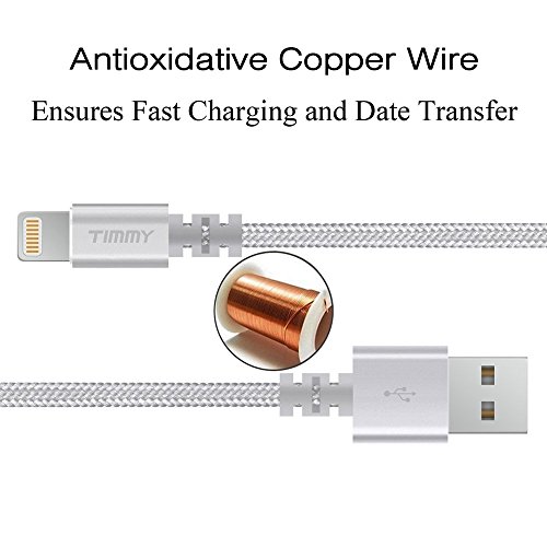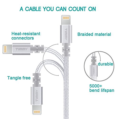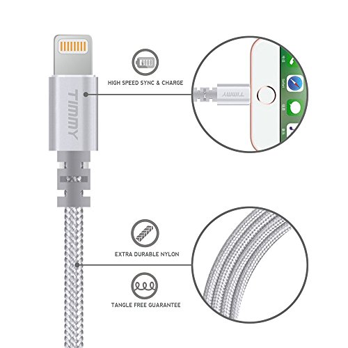 IPhone Charger TIMMY 3Pack 6FT Nylon Braided 8 pin Lightning cable certified to charging Cable with charging indictor powerline for iPhone 5/5C/5S/6S/6S PLUS/7/7 plus, iPad Air, and more (silver)