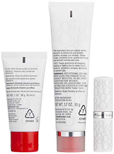 -. Binding : Health and Beauty -. Brand : Elizabeth Arden -. EAN : 0085805556389 -. Feature : Petrolatum A universally acknowledged intensive moisturizer that also soothes and protects the skin. / Vitamin E Acts as an antioxidant to help protect the skin from free-radical damage. It is easily absorbed by the skin and has soothing properties. / Dimethicone Helps protect chapped, cracked dry weather exposed hands. -. IsAdultProduct : 0 -. Label : Elizabeth Arden -. Manufacturer : Elizabeth Arden -. MPN : Elizabeth Arden -. NumberOfItems : 1 -. PackageQuantity : 1 -. PartNumber : Elizabeth Arden -. ProductGroup : Prestige Beauty -. ProductTypeName : LUXURY_BEAUTY -. Publisher : Elizabeth Arden -. ReleaseDate : 2017-03-07 -. Studio : Elizabeth Arden -. Title : Elizabeth Arden Eight Hour Cream Protectant Original Set -. UPC : 085805556389