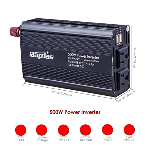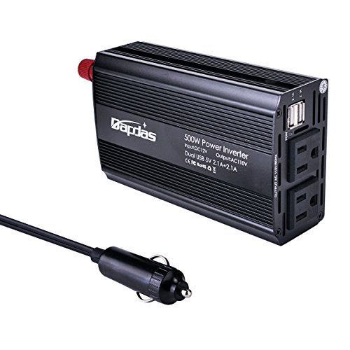Bapdas 500W Power Inverter Converter DC 12V to AC 110V Car Charger with 4.2A 2 USB Ports Car Power Adapter-Black