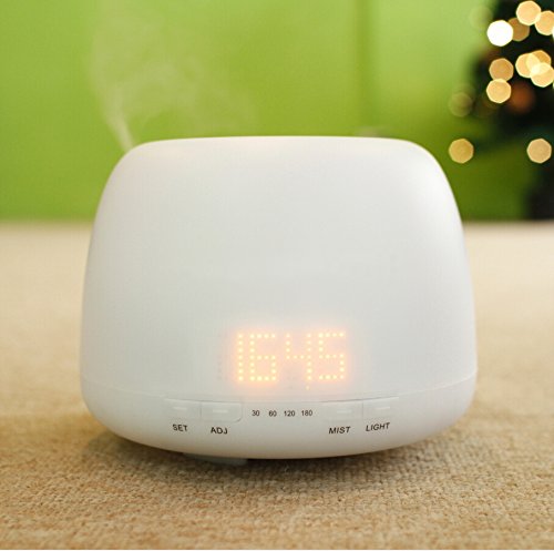 -. Feature : Digital Clock Function- Built in Electric soft orange glow clock with 12/24h Mode For your choice,You will never worry about missing your time any more during therapeutic aromatherapy sessions, calming Yoga or a soothing, spa massage. The high-grade clock screen and lights make it so cool to place it beside your bed. / 4 Timer Settings And 400ML Large Capacity-With The 4 TIMER(30/60/120/180 minute) SETTINGS, you are able to control its operation according to your needs.By means of the 400ML Large Capacity,You won't have to worry about your diffuser running out of water soon.Additionally, our diffuser features a built-in waterless auto OFF function,Safe for you and your family. / All In One-This Multi-Functional Mist Aroma Diffuser Can be used as Digital Clock, Essential Oil Burner, humidifier, air purifier, oil fragrance disperser & night light.The 2016 newwest and best aromatherapy gadget on the market,Worthy to invest. / 2.4 MHz Ultrasonic Diffusing Technology-With the help of this technology,all essential oil particles retain their therapeutic and healing properties intact, while they are effortlessly diffused as pure micro-particles, completely separated from water, filling the air with a fragrant, cool mist. / Warm White Led Light With Brightness adjusting-This aroma mist humidifier is with warm white Led Light, You can adjust the brightness depends on your needs, If you just want the mist humidifier, You can shut off the light, Very convenient.