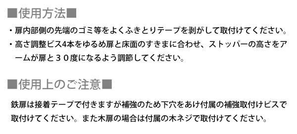 ブロンズとクロームの2色よりお選びください。 製造国:台湾 素材・材質:亜鉛ダイカスト 仕様:取付に適合する扉の素材:木・鉄対応範囲:扉と床面のすきま1.5~35mm取付高さ(中心):床面より80mm取付けベース板:W20×H115mm 付属品:両面テープ、ネジ ※サプライヤー直送品  ご注文後5~6営業日後の出荷となります【商品名】ドアストッパー S クローム95903