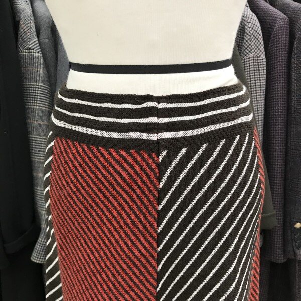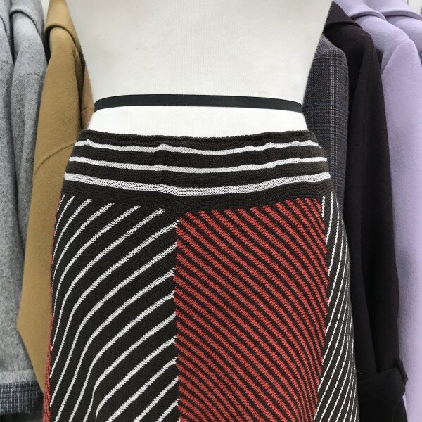 사선 배색 훌 니트 스커트입니다사선으로 들어간 스트라이프 라인이 슬림하게 연출되며 배색이 포인트가 있어 코디하시기 좋답니다허리 밴딩으로 편하게 착용가능하며 밑단 물결 라인으로 떨어져 여성스러우면서 고급스러운 분위기를 자아낸답니다사이즈 FREE총장 71cm