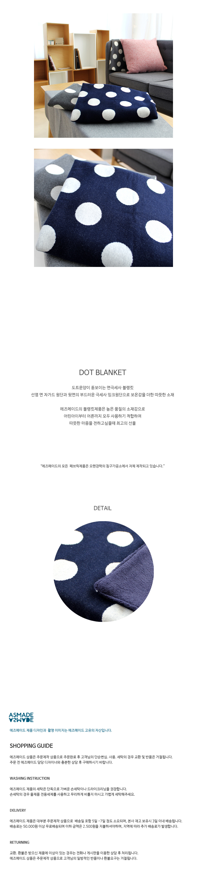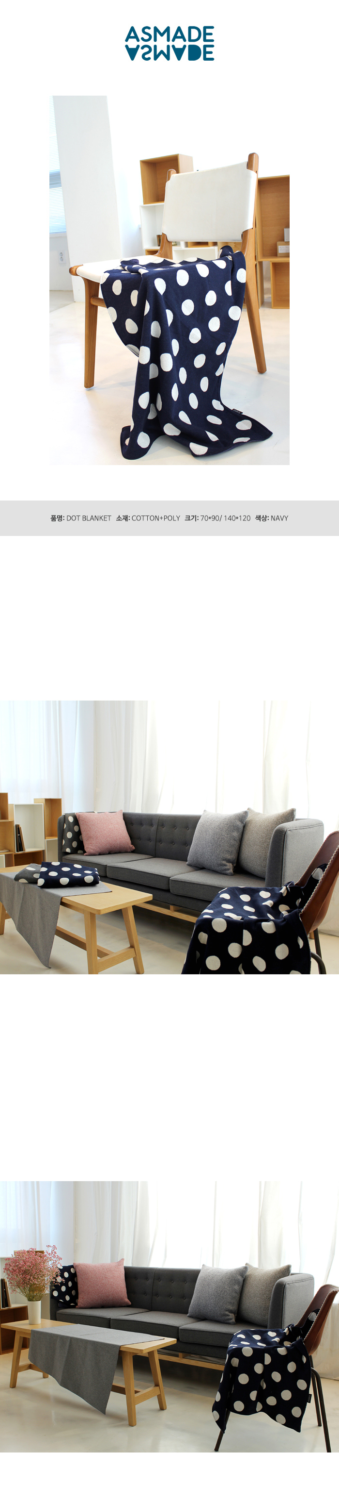 도트문양이 돋보이는 면극세사 블랭킷