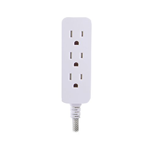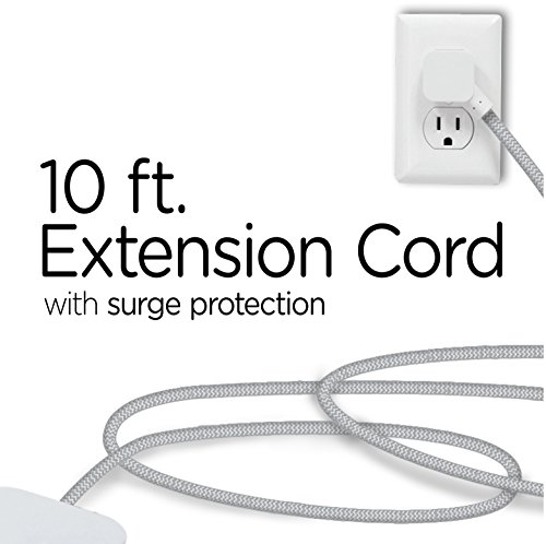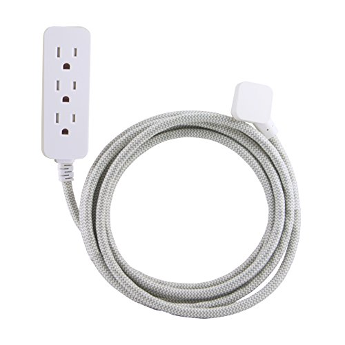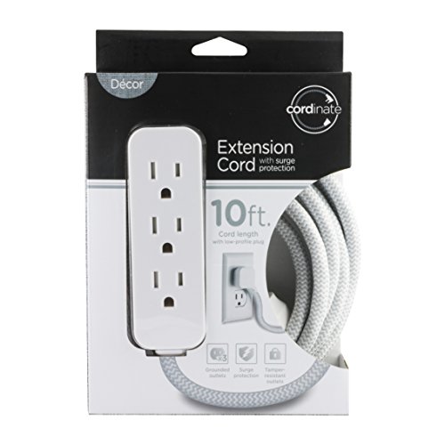 Cordinate Designer 3-Outlet Extension Cord with Surge Protection, Gray, Braided Décor Fabric Cord, 10 ft, Low-Profile Plug with Tamper Resistant Safety Outlets, 37914