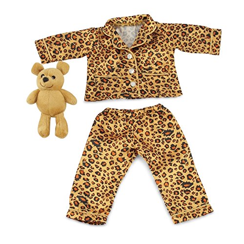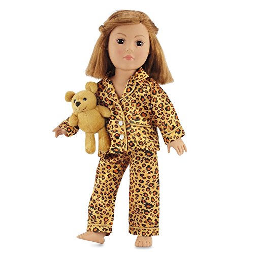 - Long sleeved button front shirt with elastic waist band pants for easy dressing. Includes adorable 18 inch doll sized teddy bear as a snuggly companion.