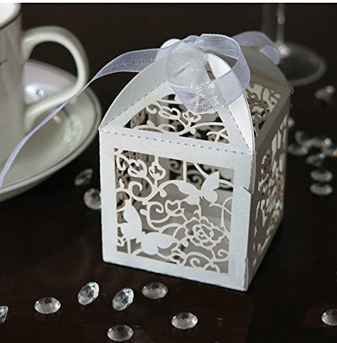 Zorpia New 50 Pack White Love Butterfly Laser Cut Favor Candy Box Bomboniere with Ribbons Bridal Shower Wedding Party Favors ZRA0168906