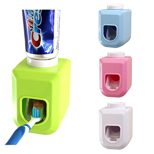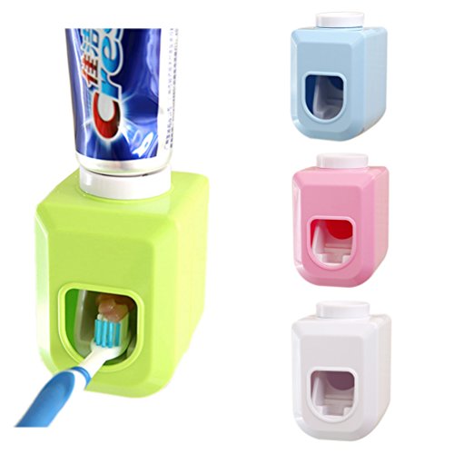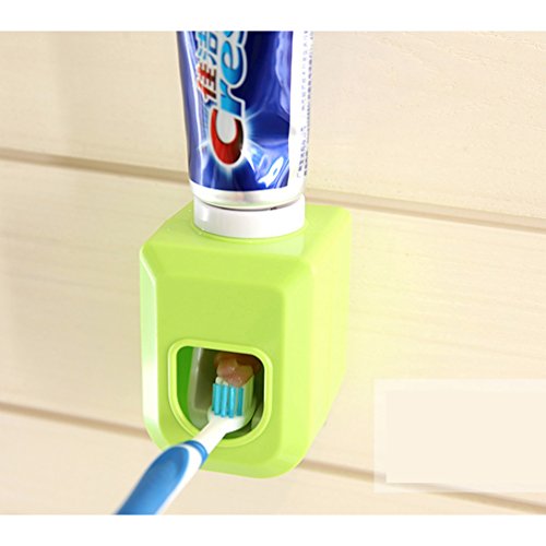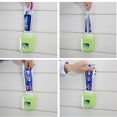 Designed for your family convenience, hygienic and economy. Toothbrush holder keeps your toothbrush safe, clean. Vented cover keeps bristles dry and sanitary. Say goodbye to sticky, messy sinks and counters.This dispenser allows you to quickly, easily and neatly dispense right amount of toothpaste directly onto your brush -High quality ABS and PP with frosting surface -Comes with strong adhesive sticker -One-touch automatically squeeze appropriate amount of toothpaste -Vacuum technology pump out last drop of toothpaste to avoids waste of toothpaste -Hygienically brushing your tooth in bathroom