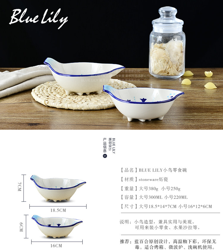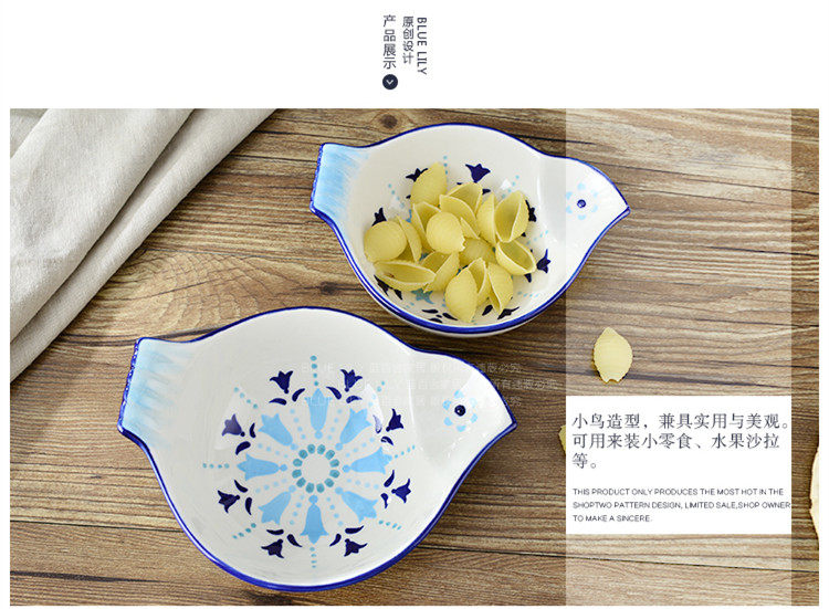 创意可爱小鸟造型零食碗 沙拉碗 手绘釉下彩 大小2号