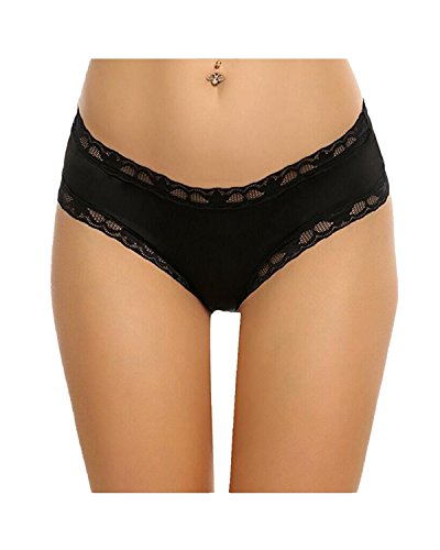 KissLace Women Sexy Lingerie Panties Lace Knickers Briefs Underwear Open Back With Satin Bow Black M