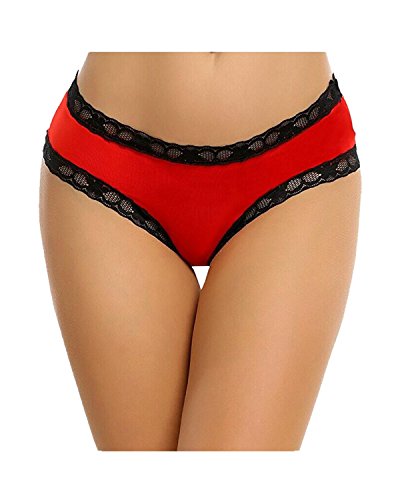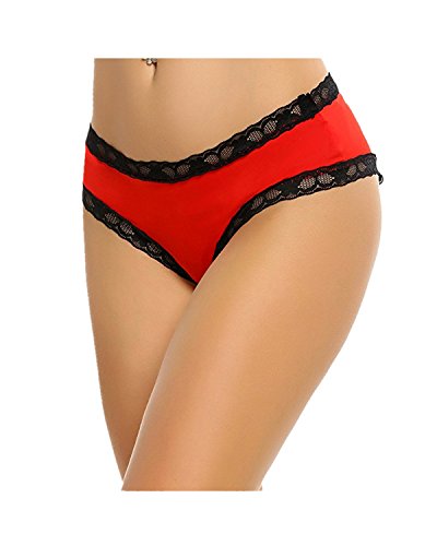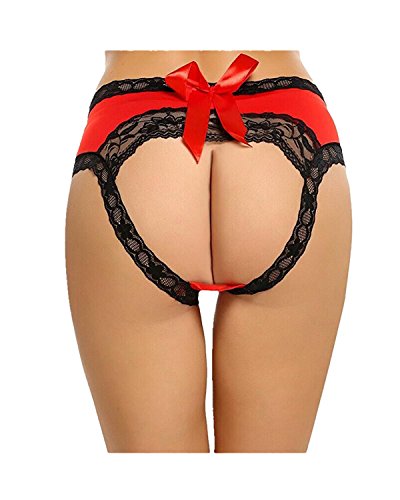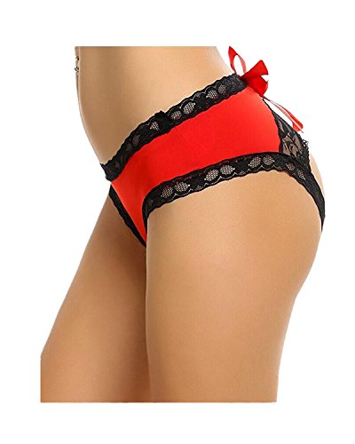KissLace Women Sexy Lingerie Panties Lace Knickers Briefs Underwear Open Back With Satin Bow Red M